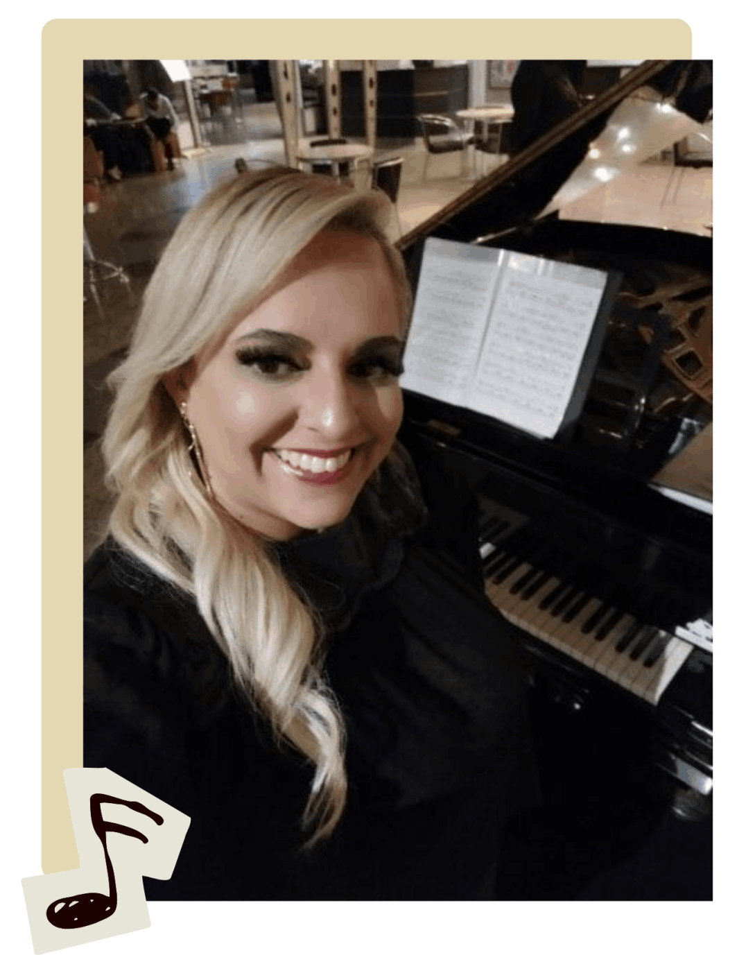 Mestranda pela The University of the Arts of Philadélphia em The Master of Music in Music Education, formada em Pedagogia e administração escolar pela Universiadade Cidade de São Paulo.